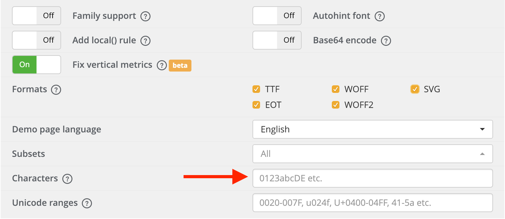 Mettre la chaîne ci-dessous dans le champ "Unicode ranges"
